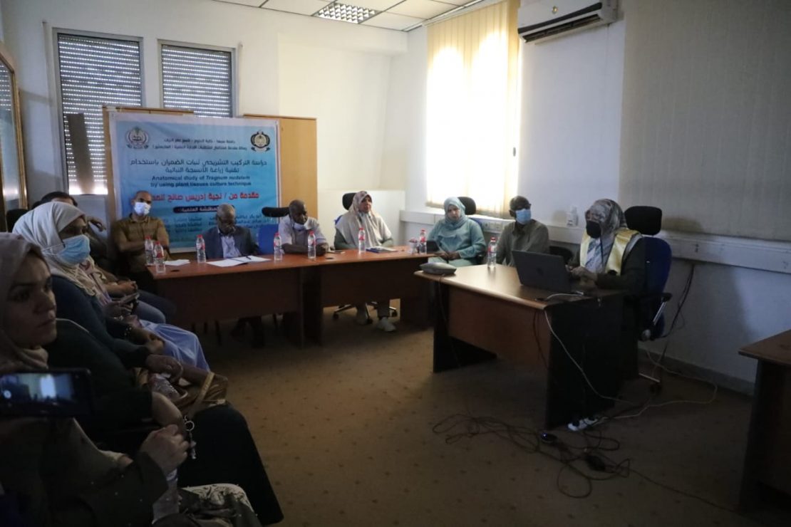 شهد قسم علم النبات بكلية العلوم بجامعة سبها مناقشة رسالة علمية موسومة بعنوان : (دراسة التركيب التشريحي لنبات الضمران باستخدام تقنية زراعة الأنسجة النباتية)، مقدمة من الطالبة : نجية إدريس صالح المدني، وذلك يوم الثلاثاء الموافق 30\5\2023 م، في تمام الساعة العاشرة صباحاً .