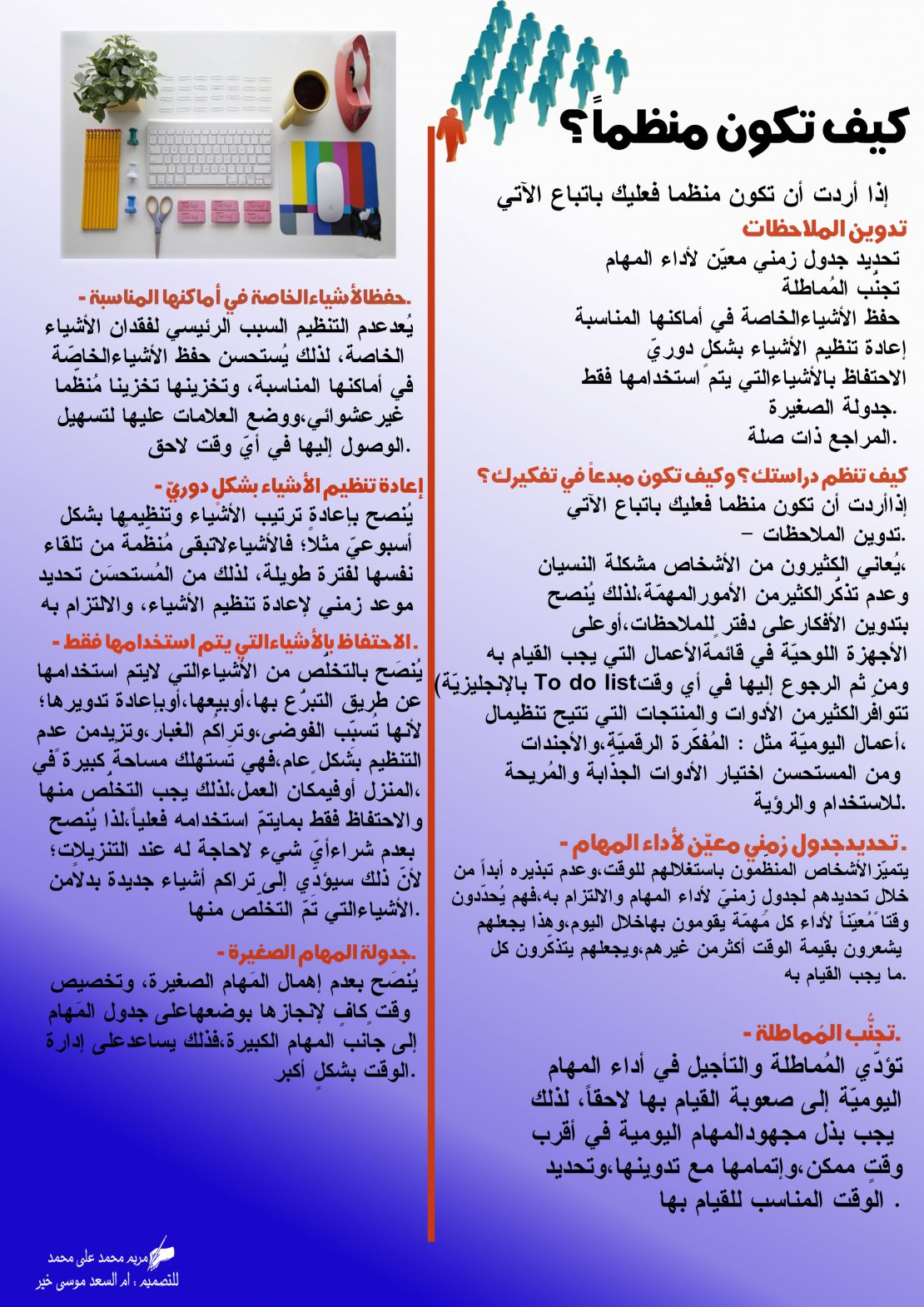 إذا أردت أن تكون منظما فعليك باتباع الآتي :
