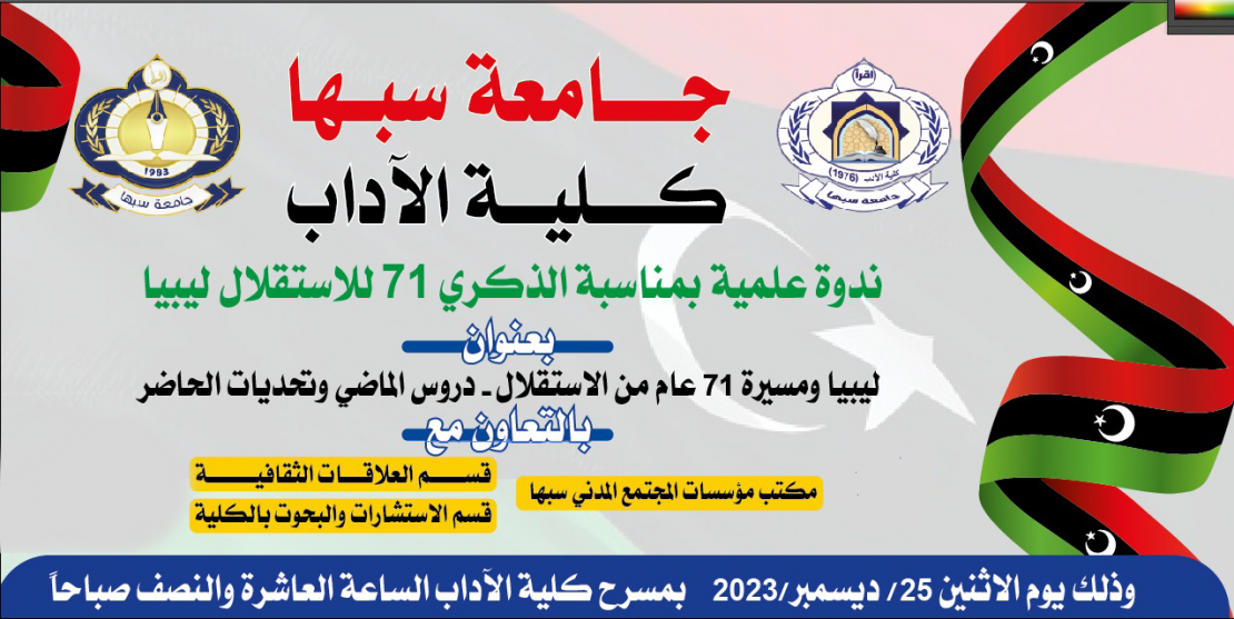 ندوة بعنوان : ” ليبيا ومسيرة 71 عاما علي الاستقلال : دروس الماضي / تحديات الحاضر “