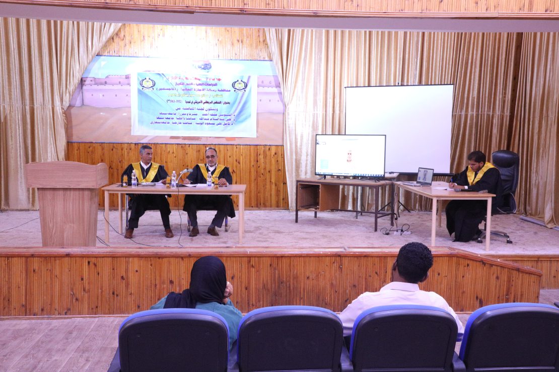 جامعة سبها : مناقشة رسالة درجة الإجازة العليا – الماجستير – في قسم التاريخ.