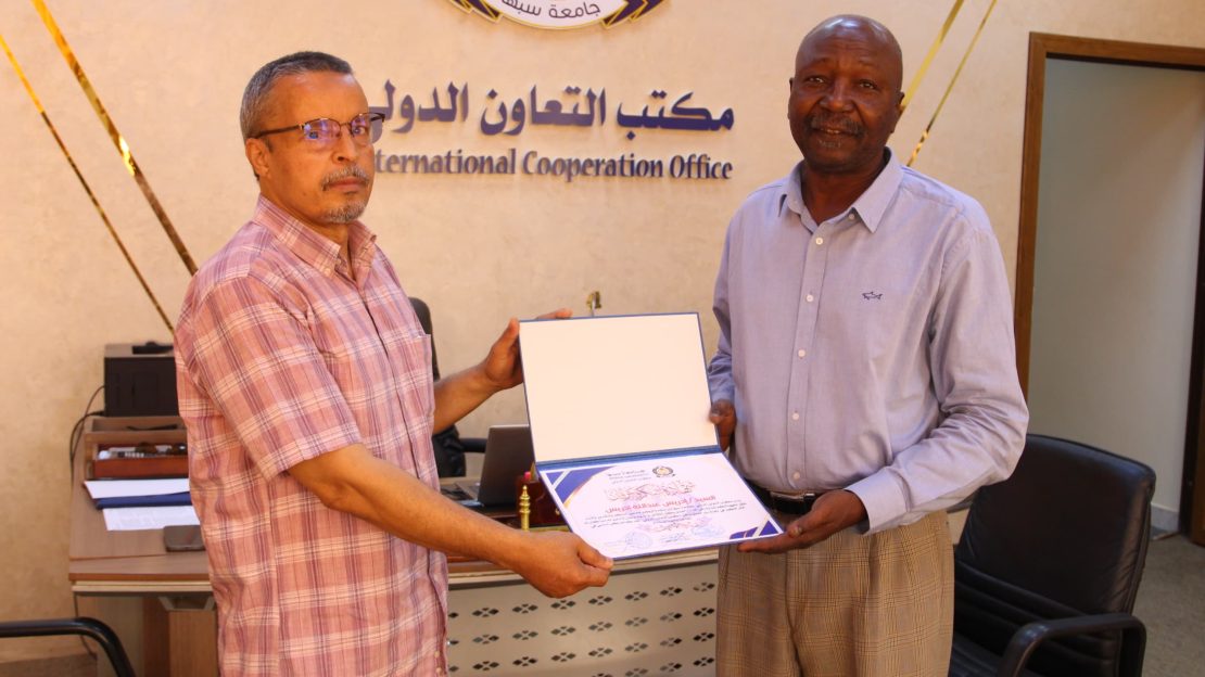 جامعة سبها : مكتب التعاون الدولي يقيم احتفالية تكريم للأعضاء القدامى.