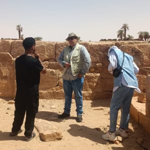 – وفي اليوم الثاني، توجه الوفد إلى مواقع أهرامات الحطية وقصيرات الروم، وتم تحليل الخصائص المعمارية والبنائية لهذه المنشآت، وربطها بالسياق الجنائزي والطقوسي للمجتمعات الصحراوية القديمة ضمن منظور أنثروبولوجي وأثري متكامل.