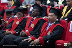 – وختاما، نتقدم بخالص الشكر والتقدير والاحترام لكل من أسهم في إقامة هذه الاحتفالية السامية من إدارة الجامعة، ورجال الأمن المحترمين، وكل الحضور.