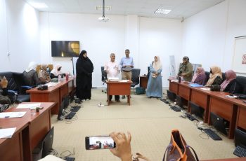 – ترأس جلسة الاجتماع د. مسعود إمحمد الرقيق رئيس الجامعة – رئيس المؤتمر – بحضور د. موسي محمد مي وكيل الشؤون العلمية بالجامعة، و د. إبراهيم علي شناف رئيس اللجنة العلمية، و د.صالح المنوني رئيس اللجنة التحضيرية، بالإضافة إلى حضور بعض الأعضاء من اللجنة العلمية.