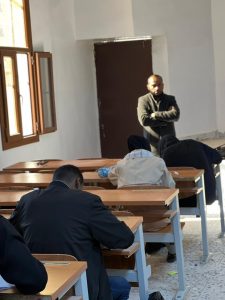 (3 -1- 2026م) عند الساعة (8:30) صباحًا في مقر كلية التمريض بجامعة سبها الامتحانات النهائية لطلبة الدراسات العليا بكلية القانون، وسط أجواء أكاديمية اتسمت بالانضباط والتنظيم والدقة في الأداء.