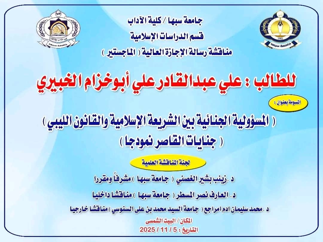 مناقشة رسالة ماجستير حول المسؤولية الجنائية بين الشريعة الإسلامية والقانون الليبي