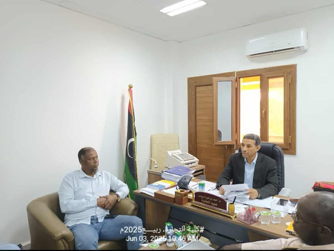 برئاسة السيد د.احمد ابراهيم اسويسي عميد الكلية وبحضور السادة اعضاء المجلس عقد مجلس الكلية بمكتب العميــــد صباح اليوم الثلاثاء في تمام الساعة 10:00 صباحا اجتماعه العادي ( الخامس ) للعام 2025 م .