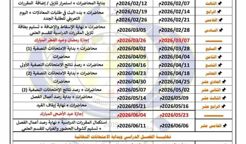 الخطــــة الزمنيــــة للفصل الدراســــي ربيــــــــع 2026 المعتمدة ، متمنّين لكــــــــم دوام التوفيق والنجاح.