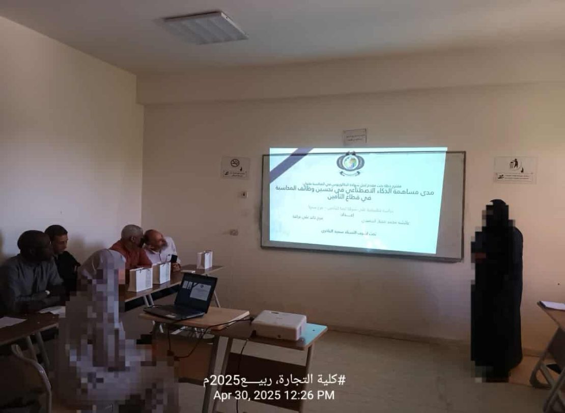في اجواء علمية اقيم ظهر اليوم الاربعاء الموافق 30 ابريل، 2025 م في تمام الساعة 11:00 صباحاً مناقشات بحوث التخرج لطلبة قسم المحاسبة بالقاعة الدراسية 12 بالكلية تحت إشراف ومتابعة من قبل رئاسة القسم العلمي .