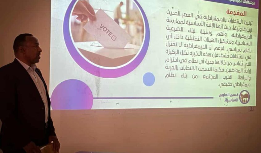 اقيمت صباح اليوم الثلاثاء، الموافق 27 مايو 2025، في قاعة الشهيد أ. علي كارة، ندوة علمية تحت عنوان “مسار العملية الانتخابية في ليبيا: التحديات والفرص”، بتنظيم من قسم العلوم السياسية وبالتعاون مع مركز تنمية وخدمة المجتمع في الجامعة، بحضور السيد د. أحمد إبراهيم اسويسي عميد الكلية، والسيد محمد علي الطاهر عبدو وكيل الكلية، والسيد أ. مصطفى عقيلة أحمد. رئيس قسم العلوم السياسية،والسيـــد د. المبروك بوسبيحة مدير مركز تنمية وخدمة المجتمع. بالإضافــــة إلى عدد كبير من أعضاء هيئة التدريس والطلبــــة بالكلية ، كما شهدت الندوة مشاركة متميزة من الخبراء الأكاديميين بالجامعة وممثلي المؤسسات الانتخابية ووسائل الإعلام / وأ. علي سحب، رئيس قسم الدراسات العليا بكلية الآداب، وأ. رمضان كرنفودة إعلامي وعضو بالمفوضية العليا للانتخابات بسبها، و أ. نافع حسن ميدون رئيس قسم البحوث والندوات بالجامعة، و أ. إدريس بن جويرية إعلامي ومترشح للانتخابات البرلمانية.