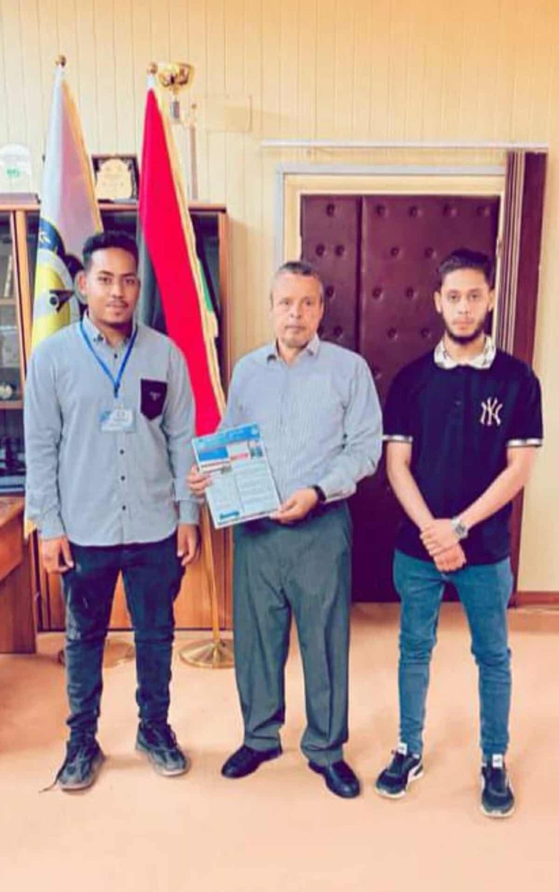 كما بدوره أثنى و شكر اعضاء هيئة تدريس بالقسم كلا من السيد الدكتور مسعود رئيس الجامعة على دعمه للنشاط الطلابي و الطلبة بالقسم الذين قامو بهذا الإبداع الفكري الرائع والجهود التى بذلوها على الصحيفة .