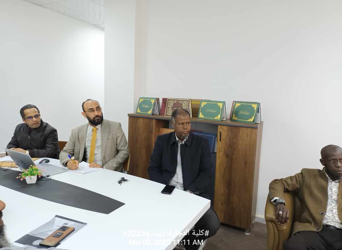 في اطار حرص الكلية على تهيئة الطلبة المستجدين وتعريفهم بأنظمة المعمول بها وتمكينهم من أن يكونوا على أتم الإستعداد لبدء دراستهـم و تعريف الطلاب بالتخصصات بالكلية، أقامت الكلية لقاء تعريفـي للطلاب الجدد الذين تم قبولهم للفصل الدراسي خريف 2026/2025 م ، وذلك صباح اليوم الخميس الموافق ، 02 اكتوبر 2025 م عند الساعة 11:00 صباحاً في القاعة رقم 8 , حيث افتتح اللقاء السيد د. أحمد إبراهيم اسويسي عميد الكلية بكلمة ترحيبية وتوجيهات عامة للطلاب المستجدين بضرورة الالتزام بلوائح الجامعة والكلية وأنظمتها المعمول بها واحترام أعضاء هيئة التدريس وعلى بذل الجهد لنيل النجاح والتفوق .وكما تضمن اللقاء مقابلة كل من السـادة / رؤساء الاقسام العلمية – رئيس قسم الدراسة والامتحانات- رئيس قسم التخطيط والمتابعة – مسجل الكلية .