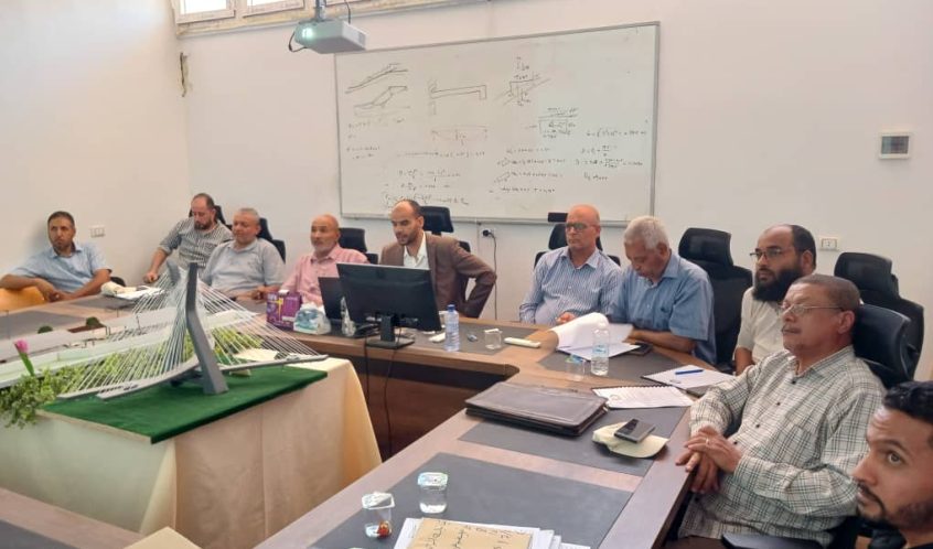 في اطار استعداد الطلبة لصقل مقترحاتهم العلمية وفق متطلبات البحث العلمي ومرتكزاته الاساسية، تم صباح اليوم الثلاثاء الموافق 1/7/2025 بقاعة الاجتماعات بقسم الهندسة المدنية والبيئية و بحضور مدير مكتب الدراسات العليا بالكلية ورئيس القسم و اعضاء هيئة التدريس وبعض طلبة الدراسات العليا بالقسم وبعض الحضور مناقشة عدد ثلاثة مقترحات خطط بحثية لرسائل الماجستير للطلبة:-