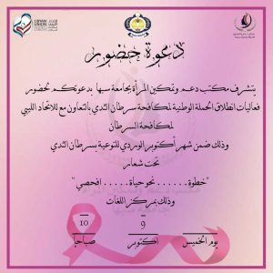 مكتب دعم وتمكين المرأة يطلق الحملة الوطنية للتوعية بسرطان الثدي.