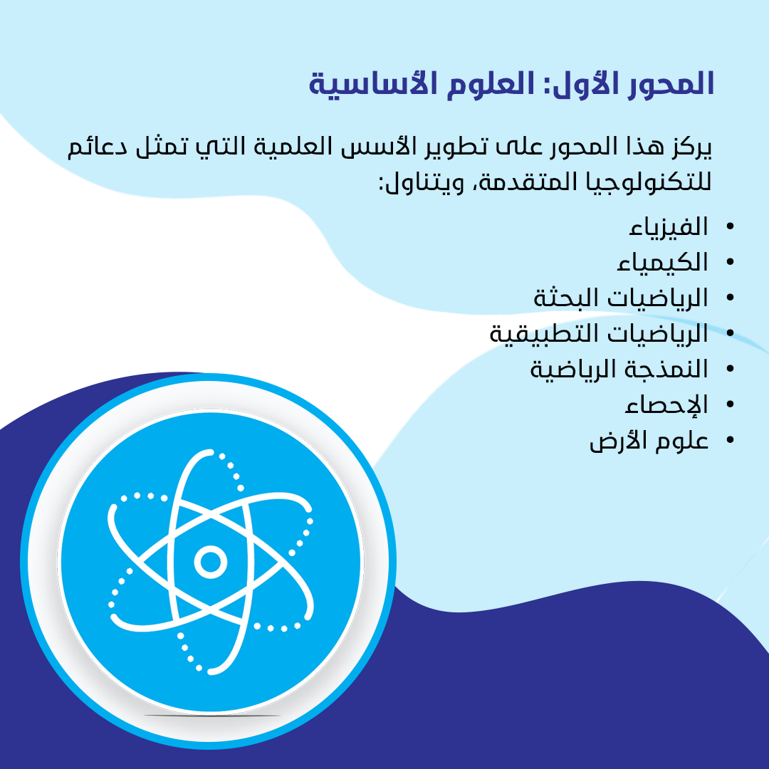 ويشمل هذا المحور علوم (الفيزياء، الكيمياء، الرياضيات، الإحصاء، علوم الأرض)