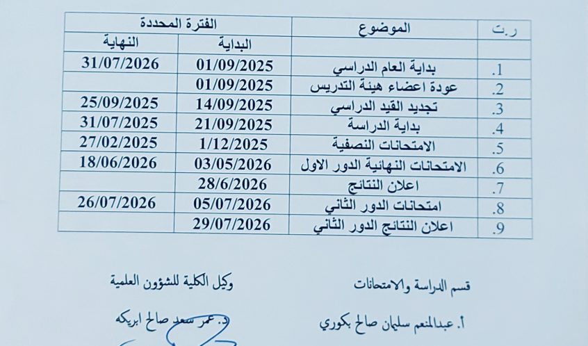 الخطة الدراسية لكلية الصيدلة للعام الجامعي 2026-2025